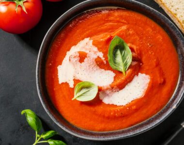 Suppe aus sonnengereiften Tomaten, mit Balsamico und Basilikum verfeinert