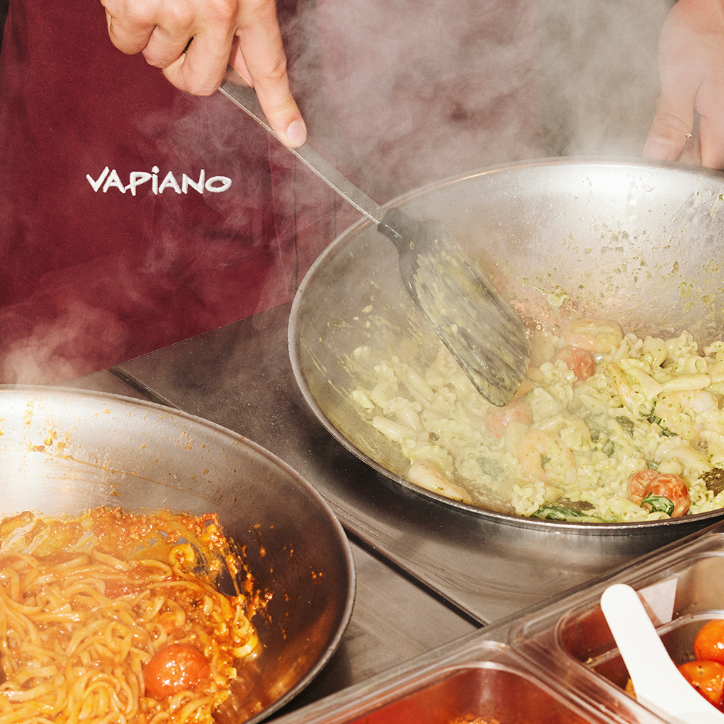 Bei uns trifft italienisches Lebensgefühl auf entspannte Atmosphäre. Unsere Vapianisti bereiten frische Pasta, Pizza und Insalata von Hand zu, täglich, sichtbar und mit ganz viel Amore.